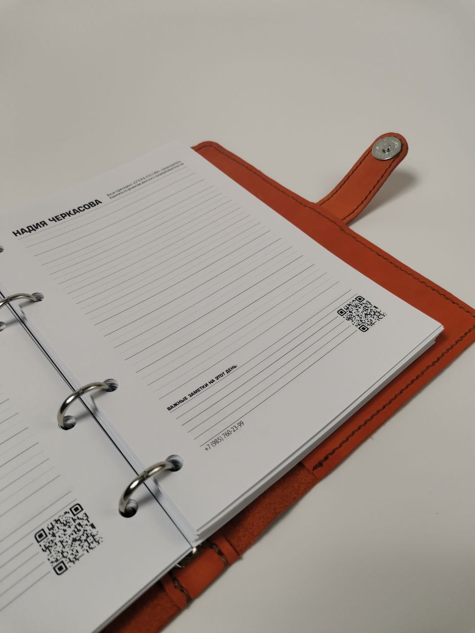 - Сменный блок листов, разработанный специально под вас (возможно добавить ФИО, контактные данные, QR и любую иную информацию).
